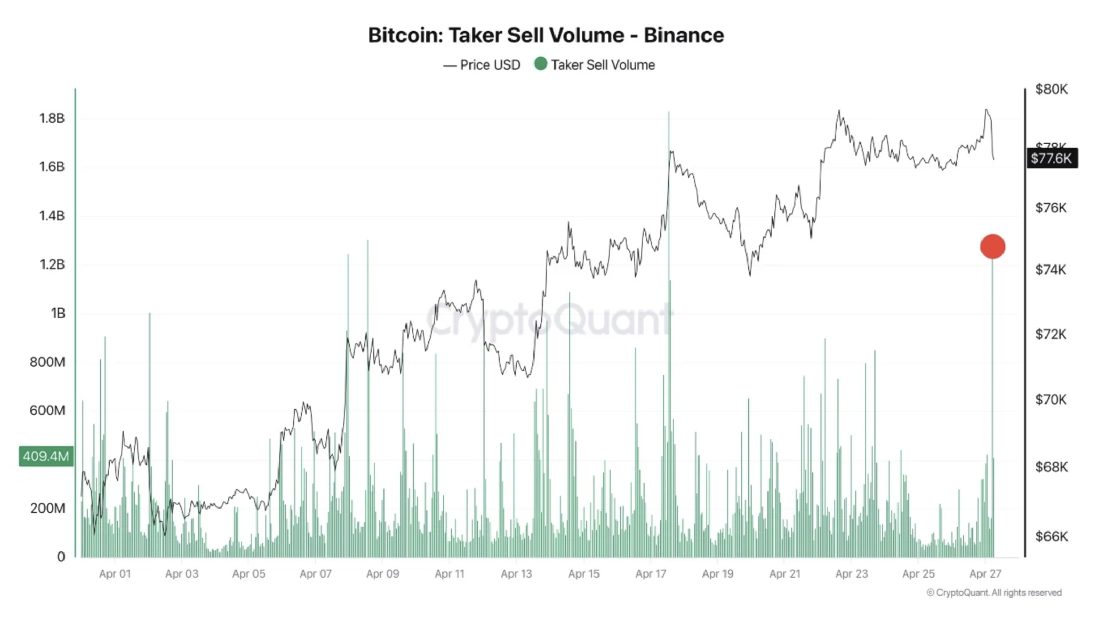 Bitcoin: taker sell volume on Binance. Source: CryptoQuant