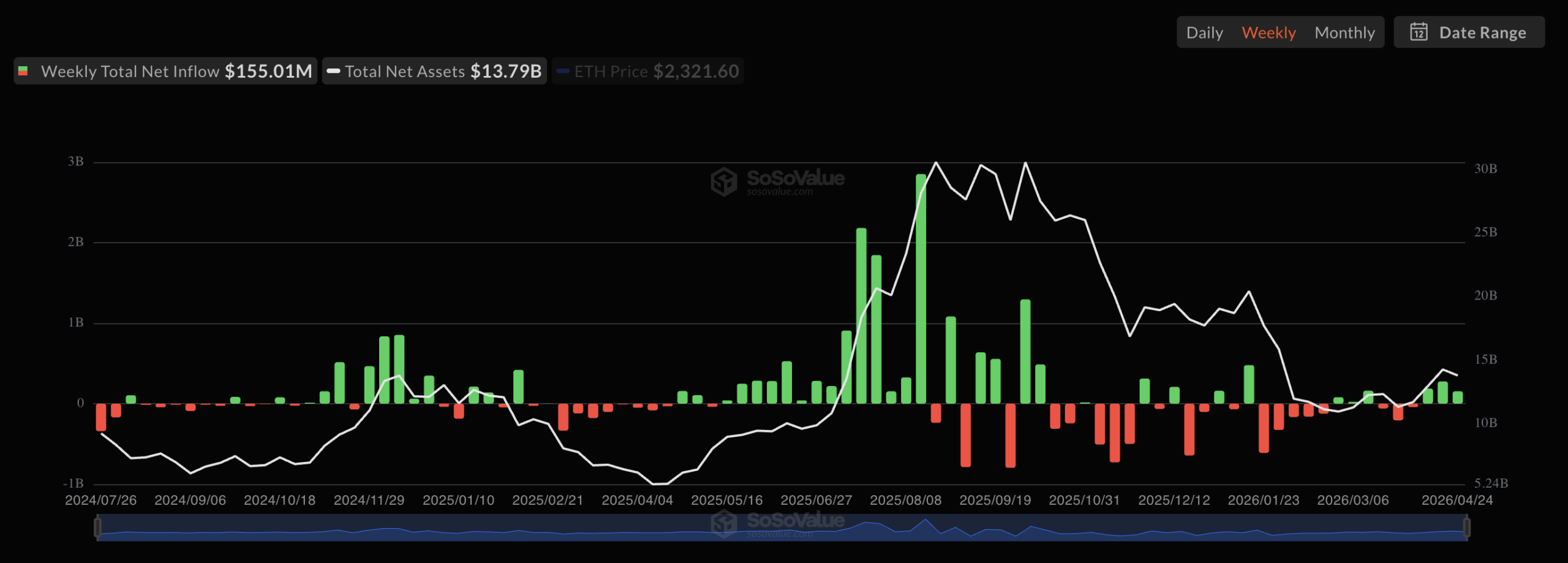 US spot Ethereum ETF weekly flows. Source: SoSoValue
