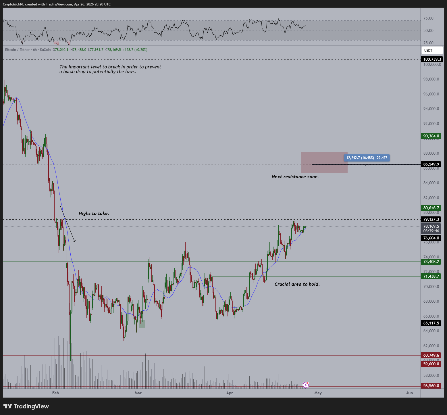 BTC/USDT six-hour chart. Source: Michaël van de Poppe/X