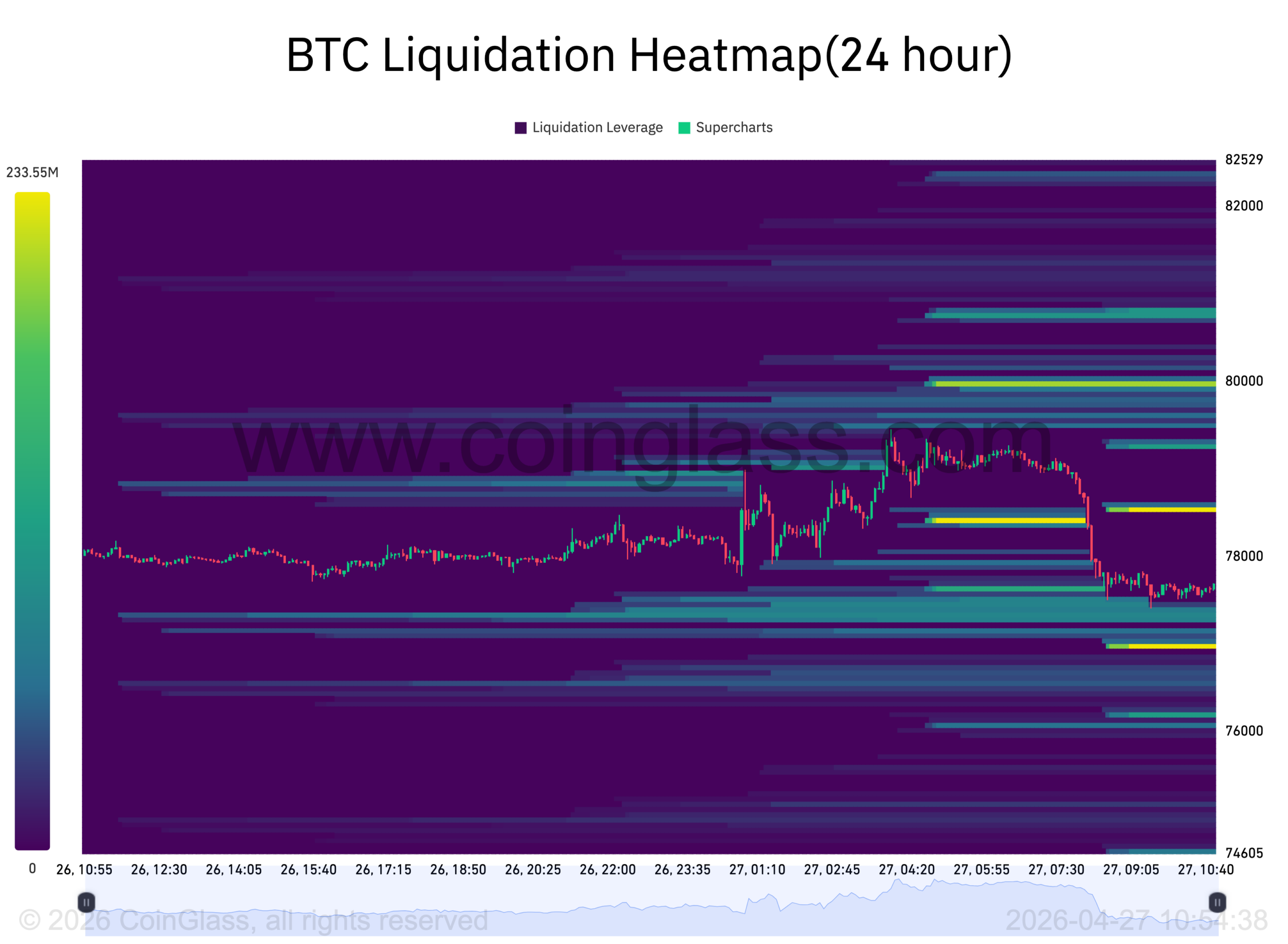 BTC 24-hour liquidation heatmap. Source: CoinGlass