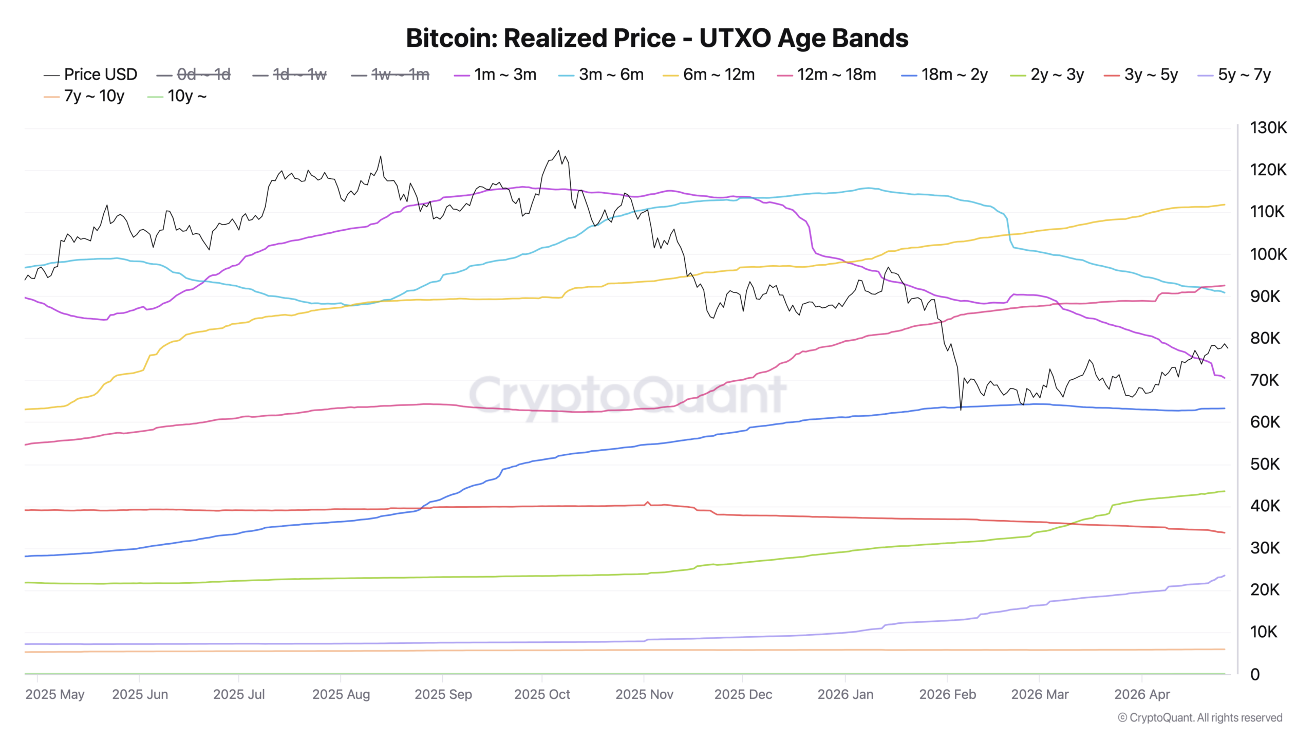 Bitcoin realized-price data ordered by date coins moved onchain. Source: CryptoQuant
