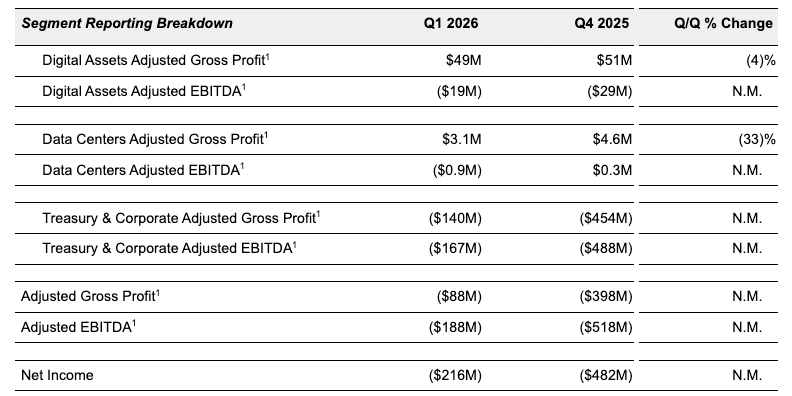 Digital Assets generated $49 million in adjusted gross profit, while losses were heaviest in Galaxy’s Treasury and corporate segment, which posted a $167 million adjusted EBITDA loss amid market volatility.