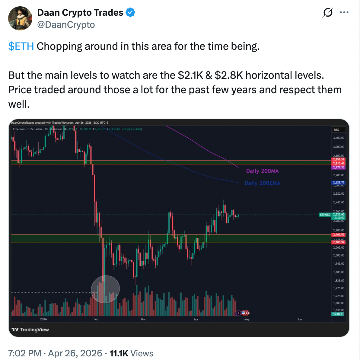 ETH/USD daily chart. Source: X/Daan Crypto Trades
