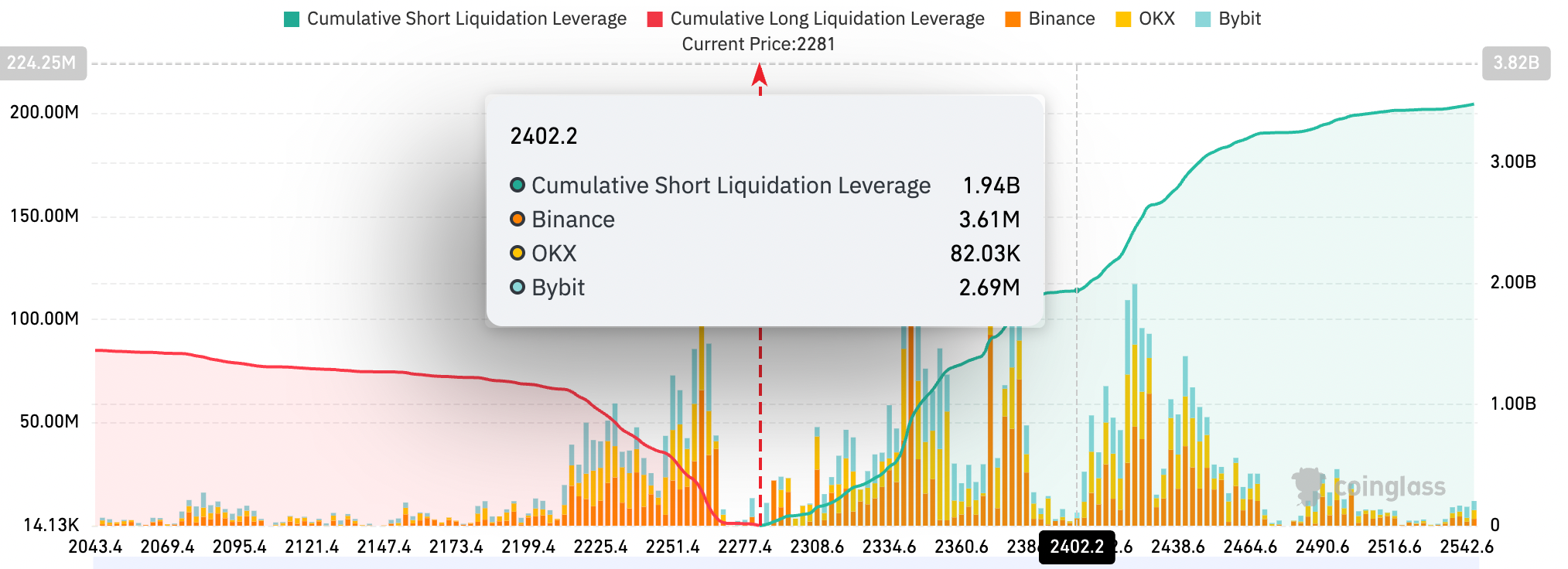 ETH exchange liquidation map. Source: CoinGlass