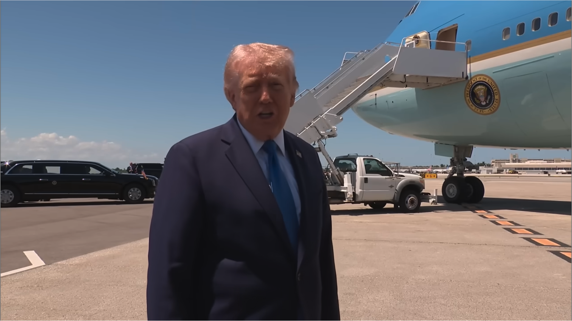 Donald Trump speaking to reporters in Florida before departing for Washington, DC. Source: YouTube